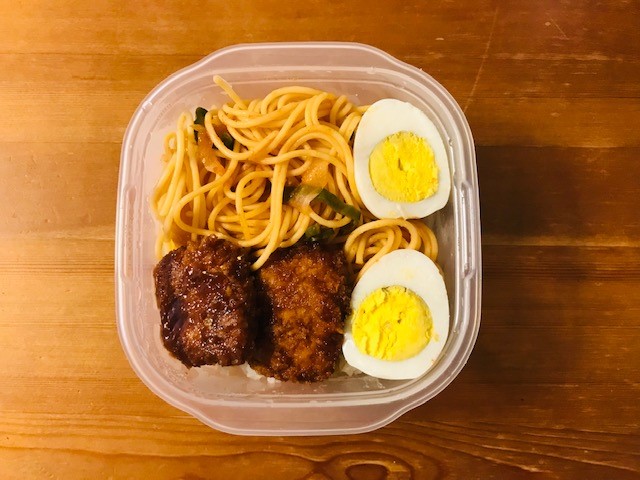 昔懐かし洋食屋さんのランチのようなメニューのタッパー弁当。