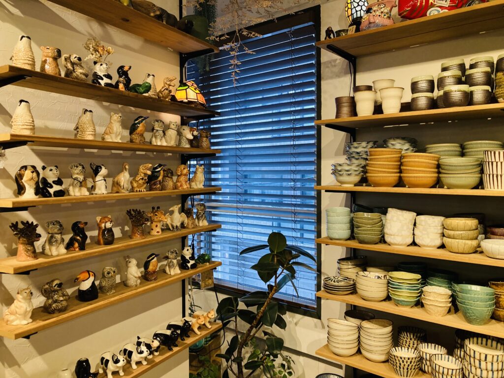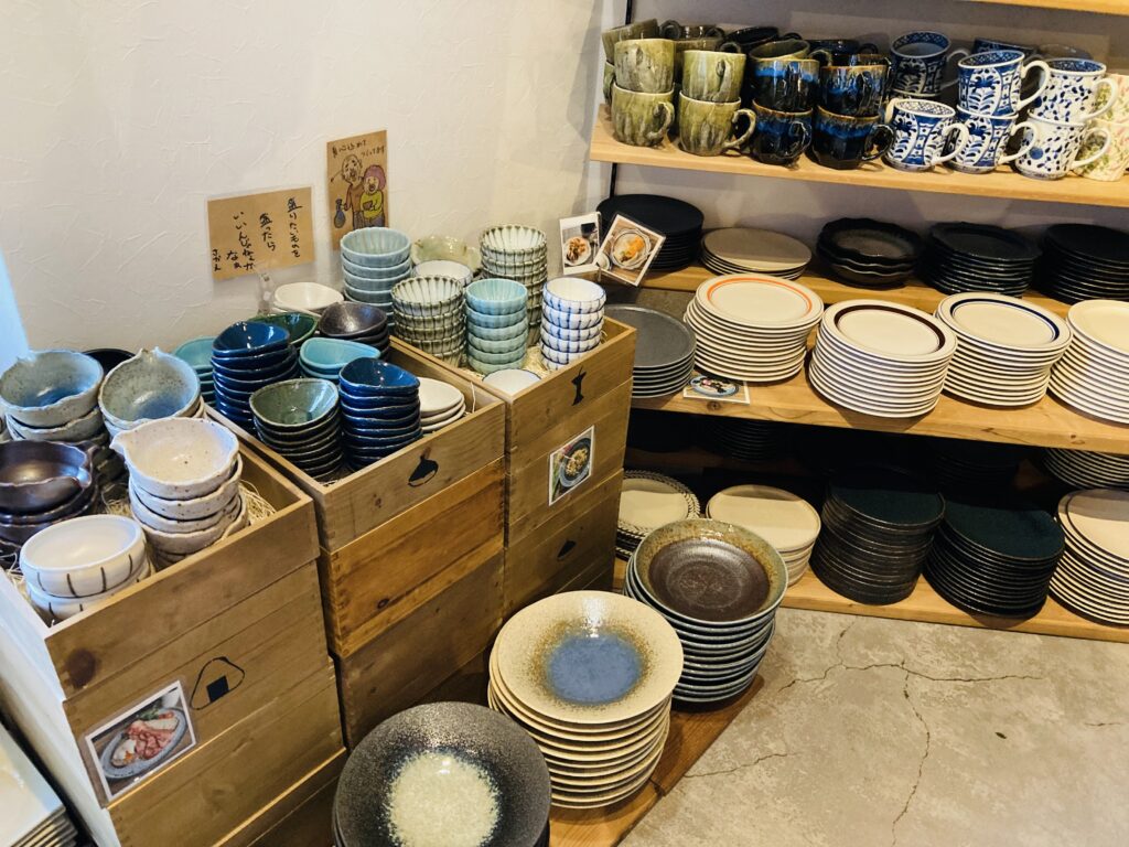 大きさごと、種類ごとに並ぶ可愛い食器たち。