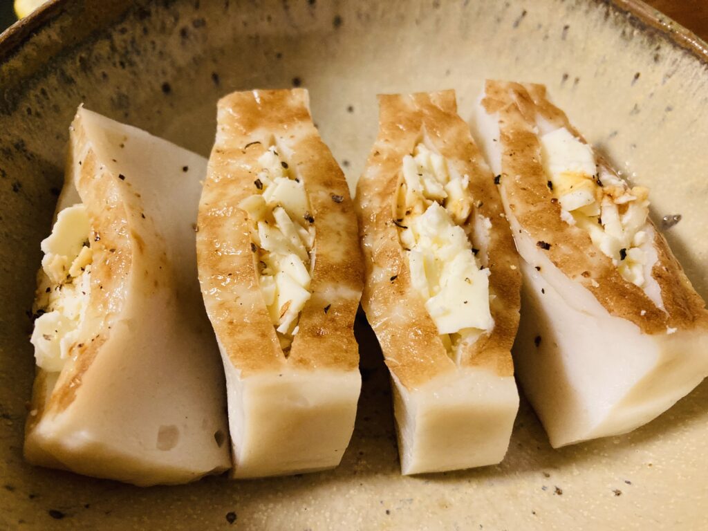 カマボコにはチーズをはさんでブラックペッパーと醤油をかけました。