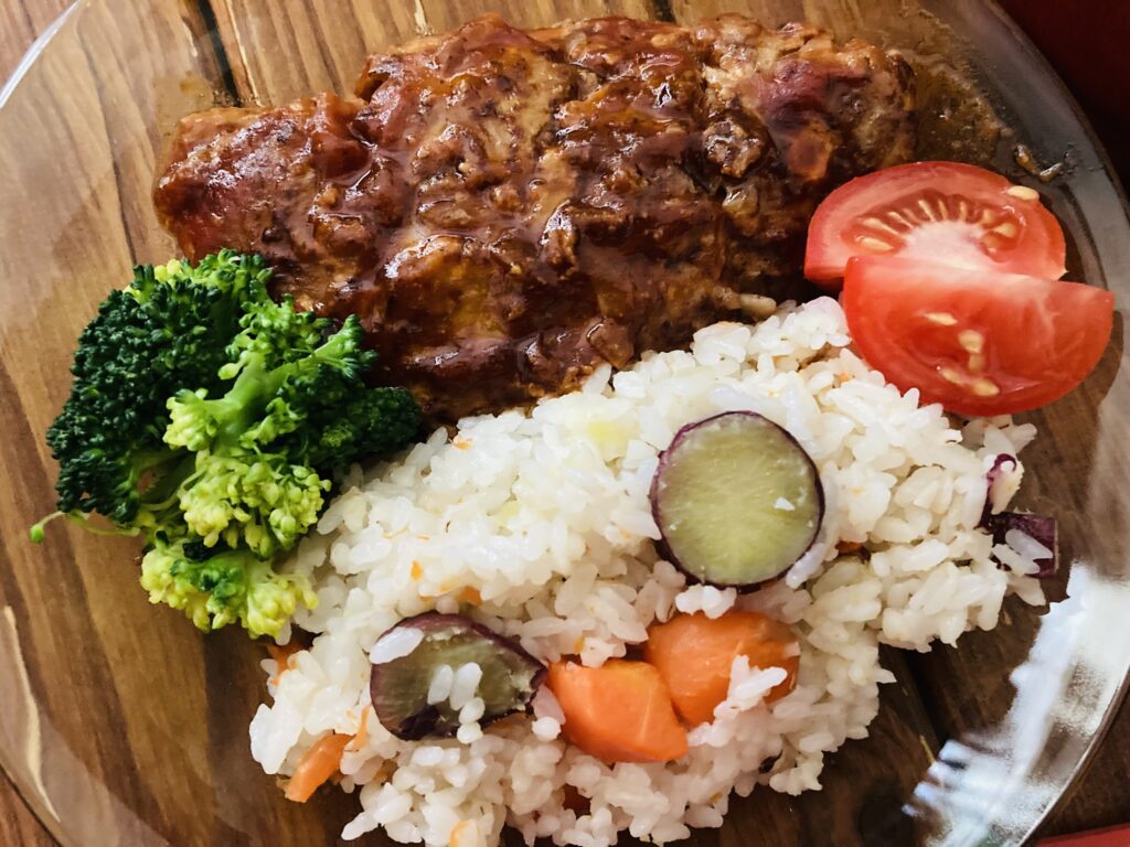 横長ハンバーグ。味もボリュームも大満足です。
