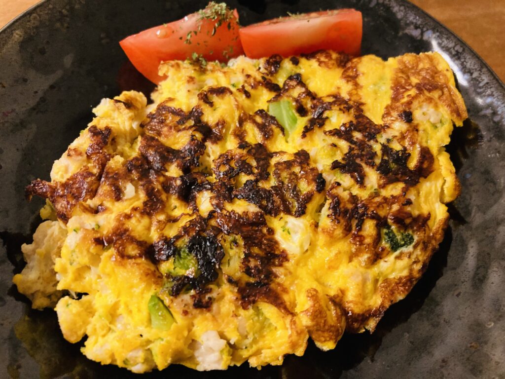 いつも朝に食べるオムレツですが、お肉や野菜を入れたら晩ごはんのおかずにもなりました。