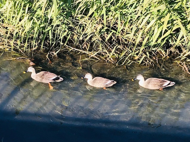 柵の影が川に映り、カモが横断歩道を渡っているように見えたのが面白くて、カメラをパシャリ。