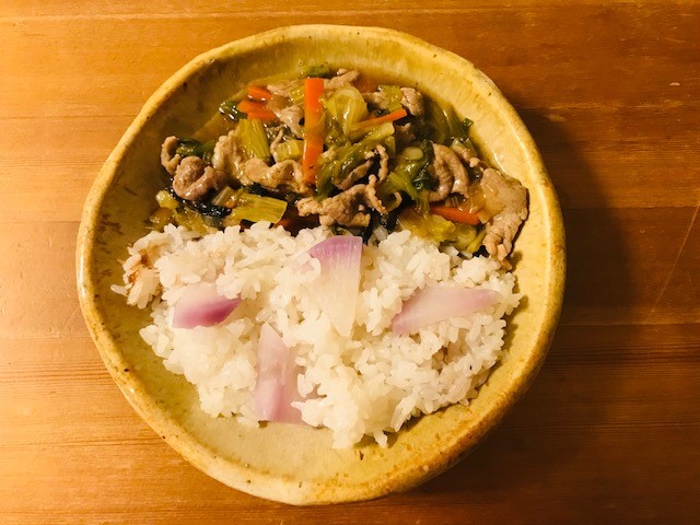 これにちょっとした漬物や豆の煮物、小さなサラダ、みそ汁など簡単なものをつけたら晩ごはんの完成です。