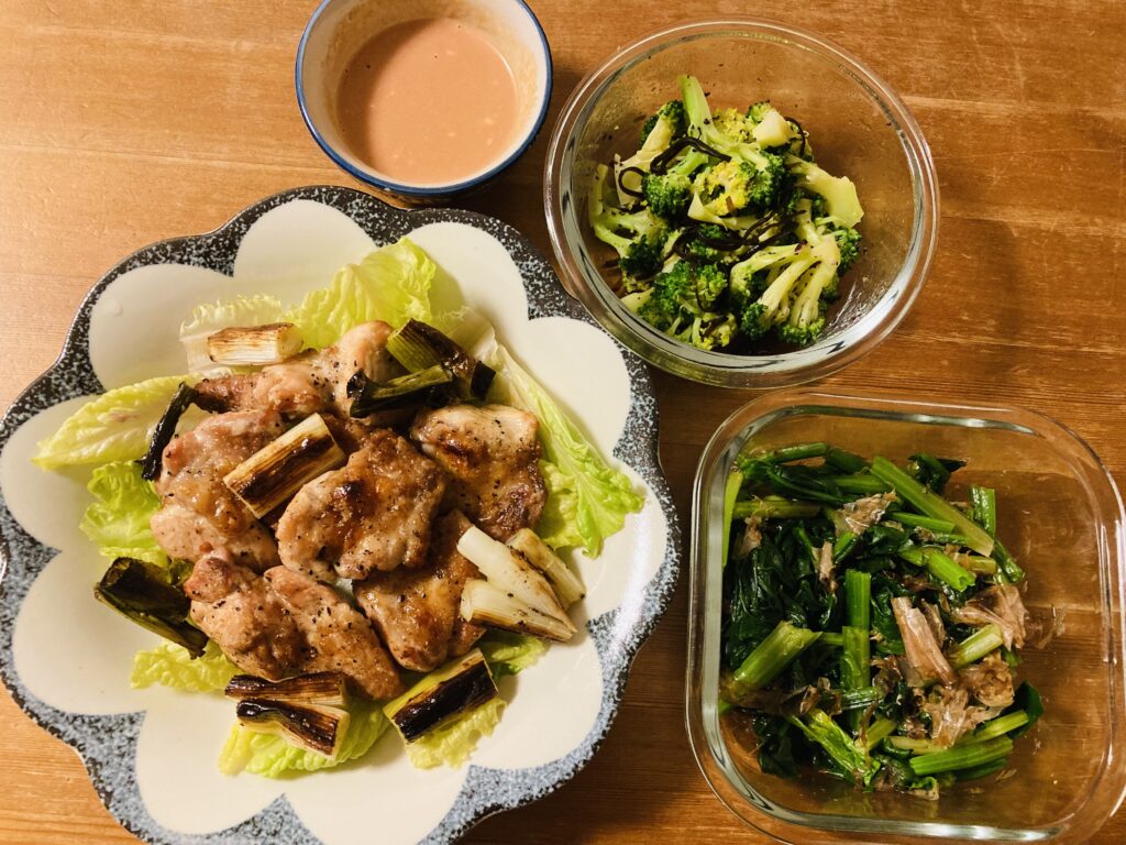 副菜はブロッコリーの塩昆布ゆかり和えと、ほうれん草のお浸しです。